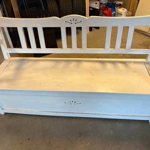 Selger massiv tre benk til gangen. Kan brukes til å sitte på og ta på seg sko eller settes ved siden av sengen som nattbord? Må hentes i Stavanger.