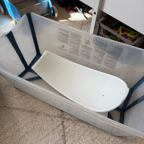 Stokke babyinnlegg i hvit farge. Designet for å gi støtte og komfort til spedbarn i Stokke-badekar. Stokke® Flexi Bath® Nyfødtstøtte.