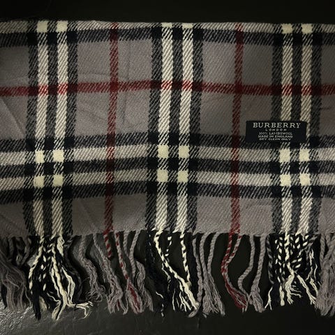Klassisk Burberry-skjerf i 100% lambwool. Behagelig og varmt. Pent brukt og godt ivaretatt i meget god stand (9/10).