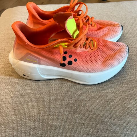Craft løpesko i størrelse 43 med oransje farge. Egnet for løping, laget i lette materialer for god ytelse under trening og konkurranse.