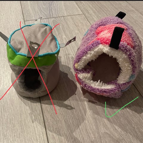 Pent brukt hamsterbur med matskål, vannflaske, løpehjul, hus og et lite reisebur