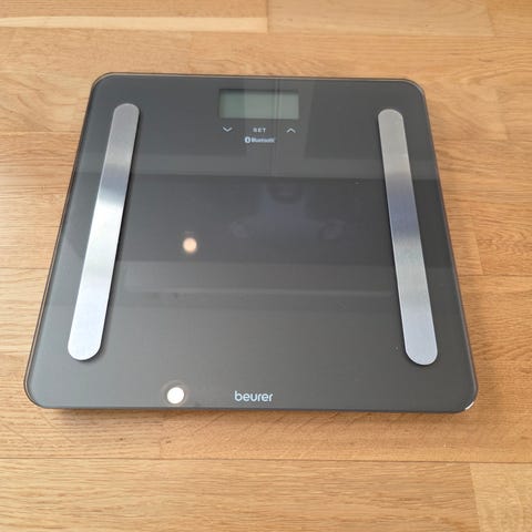 Beurer M1 blodtrykksmåler med Bluetooth-tilkobling. Enheten har en tydelig digital skjerm for visning av blodtrykksmålinger og puls. Designet for personlig bruk med funksjoner som muliggjør lagring av flere brukerprofiler. Kun testet 1 gang