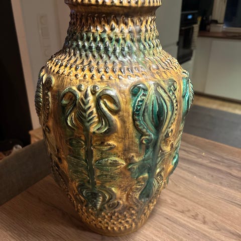 "BAY Fat Lava Vase 66-40 Midcentury". Keramikk vase fra Vest Tyskland, produsert på 1960-70-tallet. Ca 40 cm høy. Ingen synlige skader eller merker. Gi bud!