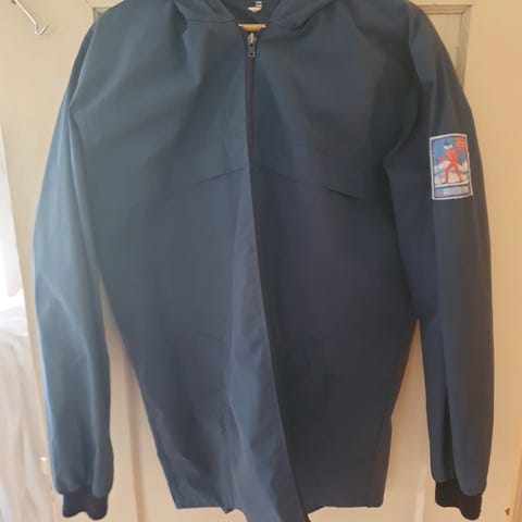 Glidelås lomme på brystet. Knapper i halsen og belegg innenfor som kan lukkes med glidelås.