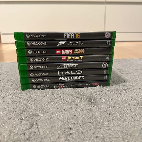 Selger en samling Xbox 360-spill i pen brukt stand.