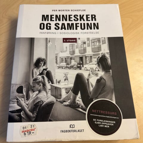 Fagbokforlaget Mennesker og samfunn lærebok i samfunnsfag. Boken dekker innføring i sosiologisk forståelse og samfunnsfaglige emner, med fokus på samfunnets oppbygning, sosiale relasjoner og samfunnsforhold.