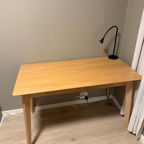 Flott skrivebord, noen bruksmerker i treverket- be om bilder :)