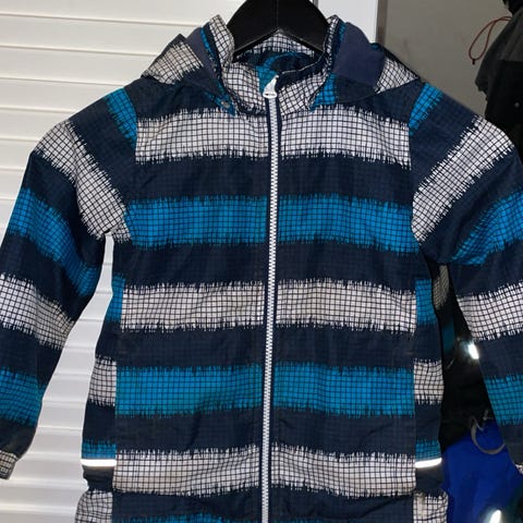 Pent brukt, håndlaget jakke selges. Jakken er sydd i juksepels og foret med jersey.