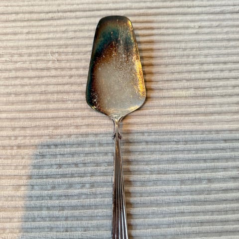 Sølvtøyet trenger en puss, og har vært pent brukt.