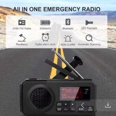 Håndsveivradio hytte radio DAB/FM med 5000 mAh batteri