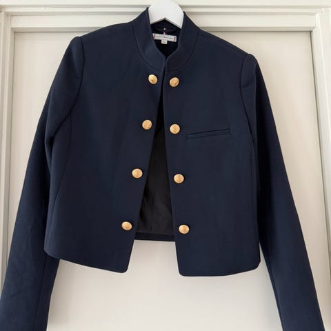 Tommy Hilfiger bomber jacka i størrelse 36 for kvinner. Jakken er laget av ull og är i en mörk blå färg. Cool passform och aldrig använd. Nypris 3799