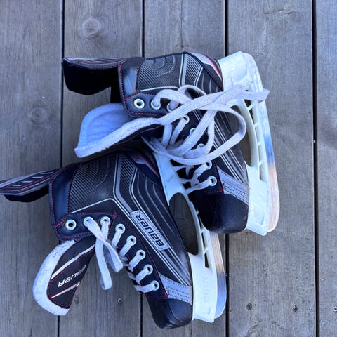 Hvite barneskøyter i størrelse 36 med dekorative detaljer. Egnet for ulike typer skøyting.