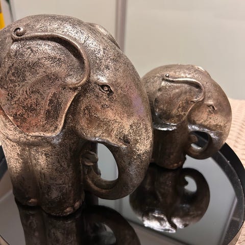 IKEA Elefant dekorasjonsfigur i blått og hvitt. Laget i keramisk materiale med detaljerte mønstre. Passer som dekorasjon i hjemmet.Har 2 stk,pris pr elefant.43cm høy,22cmdyp,50cm lengde.
