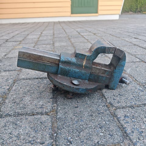 Stor skrutvinge på 26 kg 5" kjeft selges.
