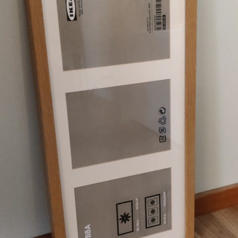 Veldig fin bilderamme 20 x 30 cm, blå med gullfargede kanter. Heng og støttefot.
