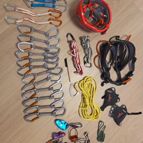 Nesten komplett isklatring pakke med 70m. dobbel/halv tau og 10 stk. isskruer, osv. Mangler bare sko. Alternativt kan man bruke ski sko. Kontakt meg ved spørsmål og ønsker 😉