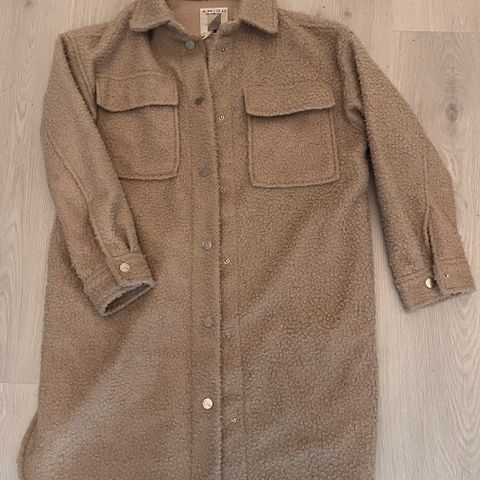 Kul teddyjakke fra danske Moves. Str. 38, normal i størrelsen. Veldig fin «teddypels». Kun brukt et par ganger. Hadde et lite hull i foret i lomma som er sydd igjen. 💫