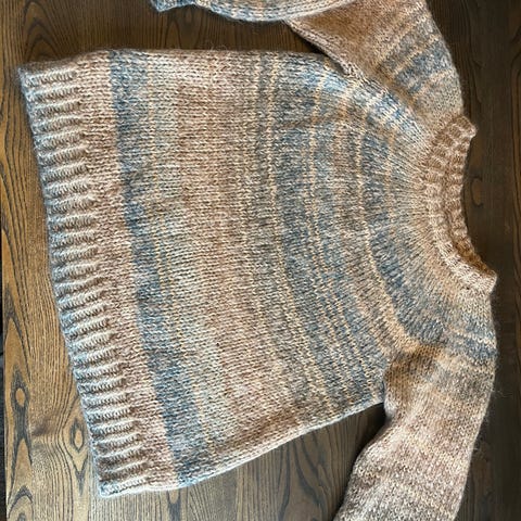 Lun genser - god som ny. Mohair/ull-blanding. Er str M, men litt liten i str. - passer liten M/S. Fargen er brun melange, se 1. bilde