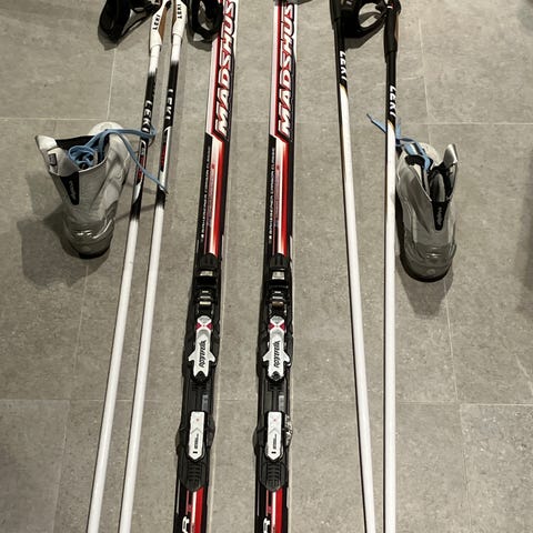 Fischer smørefrie langrennsski i lengde 160 cm. Skiene er utstyrt med Rottefella bindinger.