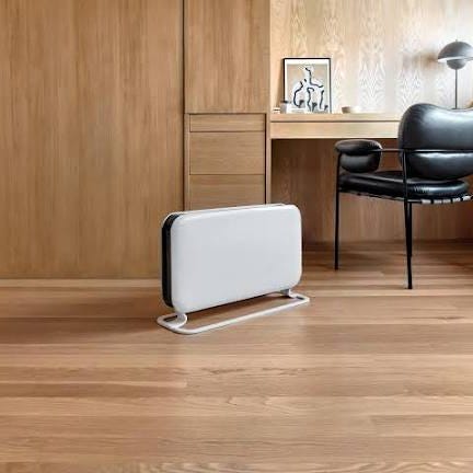 Mill Steel Convection Heater varmeovn med effekt på 1800-2000W. Farge hvit. Strømadapter for 220-240V, 50-60Hz. Designet for oppvarming av rom med konveksjonsteknologi. Selges kr. 400,- pr. stk. kr. 700,- for begge.