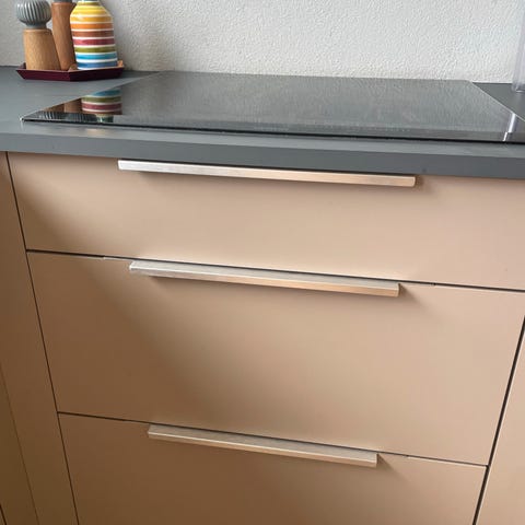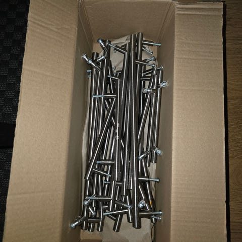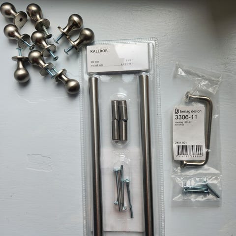 Tror det er IKEA- håndtak i svart metall med lengde på 160 mm (avstanden mellom skruehull). Leveres med skruer for montering. Rustikk i stilen, 23 stk. Trenger en vask
