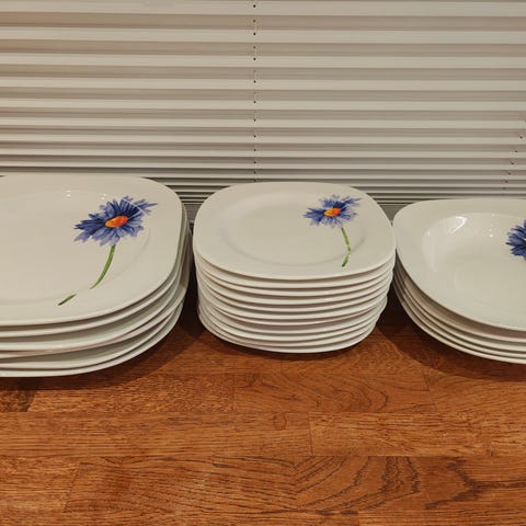 7 frokost tallerkner 3 kopp og skål 9 dessert skåler merket er royal mall dette er for deg som samler på engelsk servise pakker godt og trygt