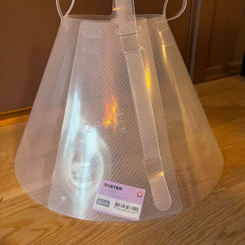 Hundekrage fra Buster. Den var opprinnelig 25 cm lang, men er klippet til å passe hund på 18kg - den er altså 21cm lang.
