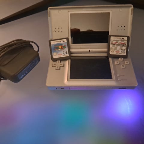 Nintendo DS håndholdt spillkonsoll i pen blåfarge med 4 stk. spill.