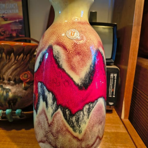 Veldig pen vase i klassisk Übelacker design. Ca. 30 cm høy. Noe krakelering på toppen som vist på det ene bildet, men ellers pen stand.