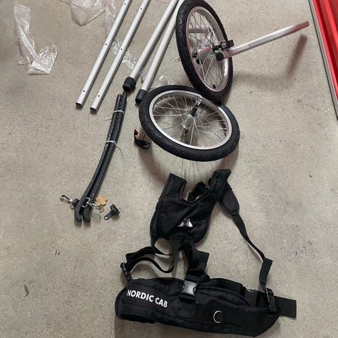 Thule Chariot Lite 2 i god stand leies ut. Vognen kan brukes både som sykkelvogn og ski-pulk (fjellpulken), og er sammenleggbar, noe som gjør den enkel å transportere og oppbevare.