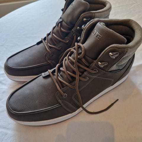 Marcant vinterstøvler i størrelse 44. Støvlene er svarte og har isolert for kulde. Egnet for vinterbruk med godt grep under sålen. Skoene har også flip pigger som gjør at du kan bruke skoene inndørs og utendørs.