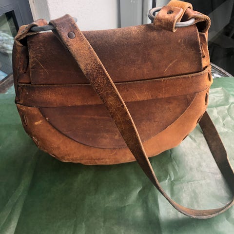 Vesken har justerbar skulderrem. Den har en lukking med glidelås og knapp og ett stort hovedrom for oppbevaring samt lomme foran.
