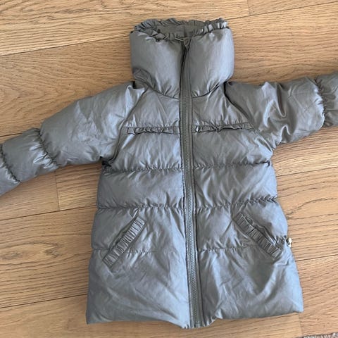 Zara jakke i størrelse 110 for jenter. Jakken er rosa og laget av polyester.