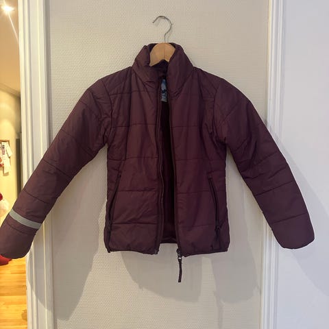 Stormberg jakke i lilla farge, størrelse 128 for jente. Laget av polyester materiale. Jakken har hette og lommer med glidelås, samt reflekser for økt synlighet.