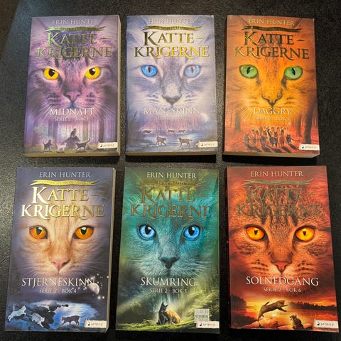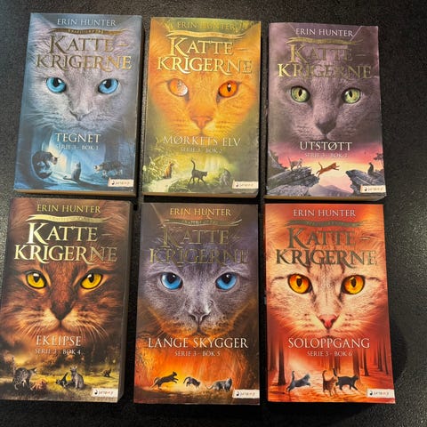 Erin Hunter: Kattekrigerne Serie 1. Alle 6 bøker fremstår som pent brukt. Selges samlet og sendes godt innpakket. Kjøper betaler frakt.