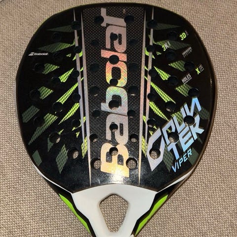 Rammebeskyttelse er montert, og ny Hesacore Padelgrip er påsatt (verdi 299 kr).