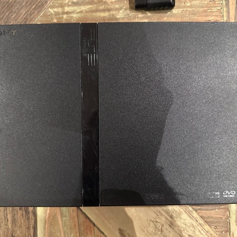 Sony PlayStation 2 spillkonsoll. Spillkonsollen er en del av PlayStation 2-serien og inkluderer ekstra kontroller. Enheten er designet for å spille PlayStation 2-spill og Playstation 1-spill. Spillene er alle testet og ser ut til å fungere nå, men jeg kan ikke garantere de fungerer hele tiden siden de er veldig gamle cd disker. Memory card er også me., men noen ganger virker den ikke så bra (det hjelper med å sette den på Slot 2). Må hentes.
