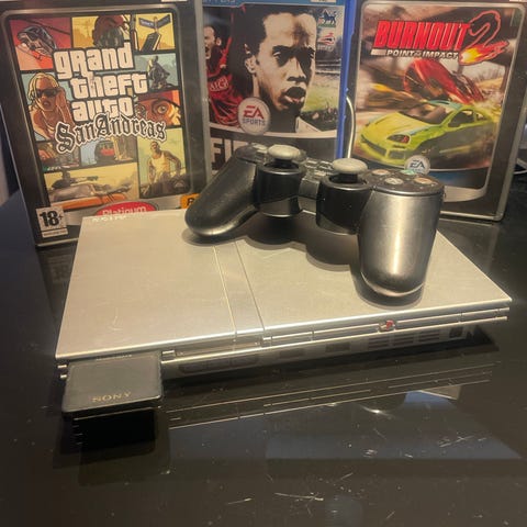 Sony PlayStation 2 spillkonsoll med 2 kontrollere, Memory Card og flere spill