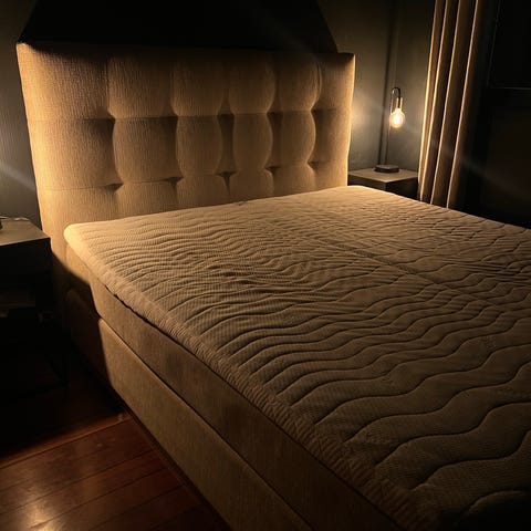 Dobbeltseng DUX - kontinental med 2x2 90cm rammemadrasser og hel Jensen overmadrass (nyere dato). Merket DUX har et av de beste kvalitetsstemplene i bransjen.