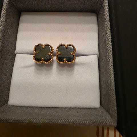Små gulløredobber med Ulike stoppere, men samme karat. Klarte ikke finne stempel på selve dobbene (mulig det er svært små stempler på den ene pinnen), så de er syretesta og alle deler sjekka av gullsmed Øiesvold i Narvik 28-1. kjøper betaler porto. Vippa kan brukes. Porto stiger 1-2.