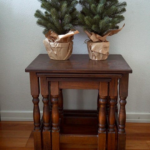 Koselig asymetrisk og massivt lite bord i heltre (ubehandlet)