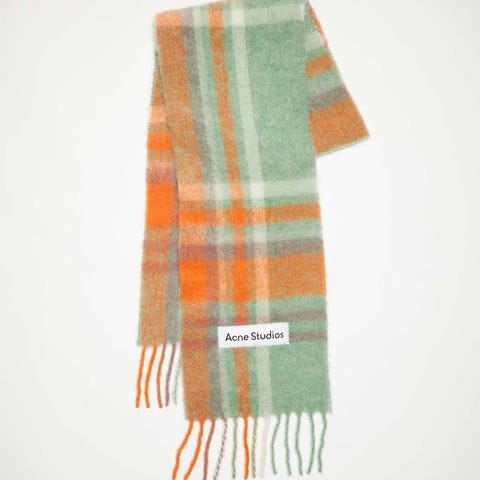 Checked scarf is made of a soft mohair blend with fringed ends. Detailed with an Acne Studios embroidered logo. Crafted from carefully selected material known for its soft and hairy fibres.