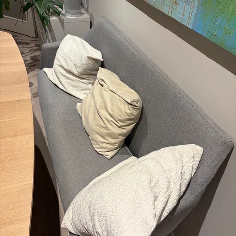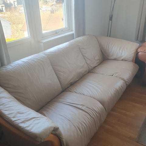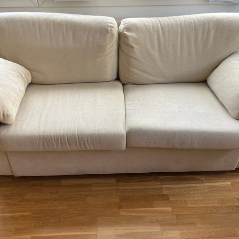 Lyse grå sofa, pent brukt, selges pga plass mangel. Et lite bruks merke ved armlene på vestre side. Trekk på putene kan vaskes i vaskemaskin. Hentes innen fredag 30.01.2026