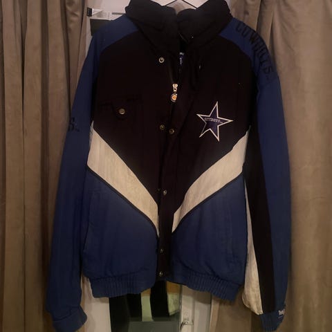 Detaljer: Den har hette, glidelås med stormklaff, og en vertikal brystlomme med svart glidelås på venstre