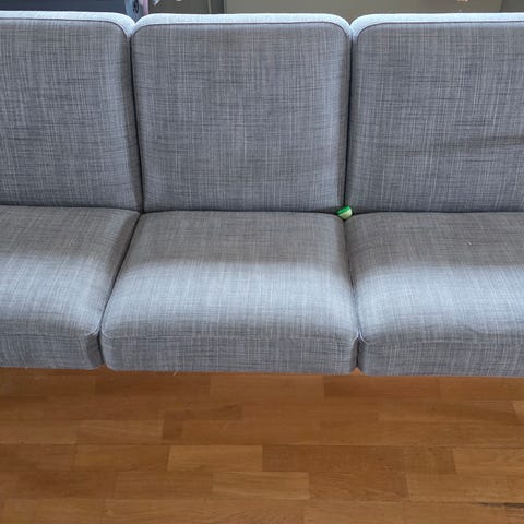 Dette er en utgått sofa av modellen PÄRUP med det IKEA kaller "mellomgrått" sofatrekk. Det er en 3-seter med sjeslong og oppbevaring (se bilder). Sofaen har 10 års garanti så det er fortsatt mye igjen av den.