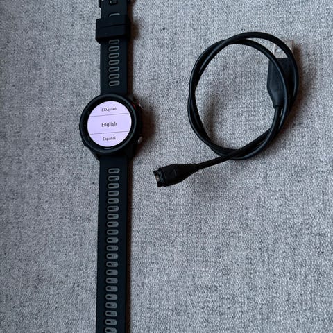 Garmin Forerunner 245 GPS-smartklokke med svart silikonrem. Klokken har innebygd pulsmåler og GPS-funksjonalitet. Egnet for trening og daglig bruk.