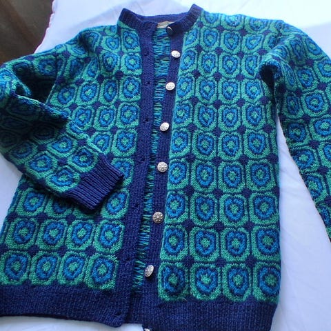 Husfliden strikkejakke i str L ubrukt i en spesiell type ull stoff