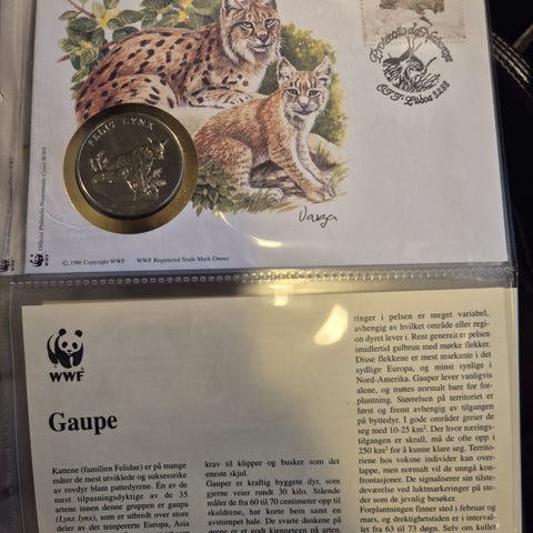 19 stk flåtte myntbrev med bilder av mange flåtte dye,og tekst til hvert dyr