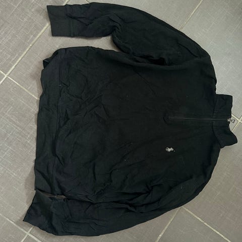 Ralph Lauren hettejakke i svart farge, størrelse M, laget av bomull. Jakken har glidelås og hette, og er designet for menn.