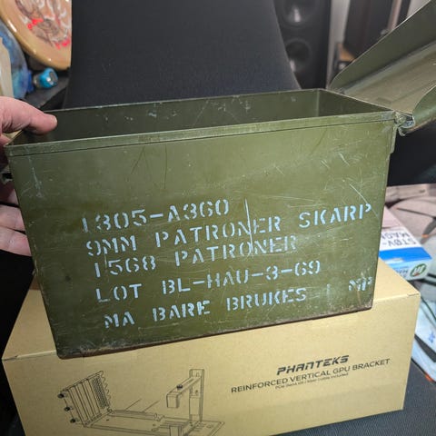 Tacoma Tent & Awning Bag Carrier Ammunition 1951 Nyompa i olivengrønn farge. Laget av slitesterkt canvas, designet for oppbevaring og transport av ammunisjon. Utstyrt med klaff og stropp for lukking, samt flere rom innvendig for organisering. Produktet stammer fra 1951 og har militær stil og funksjonalitet.